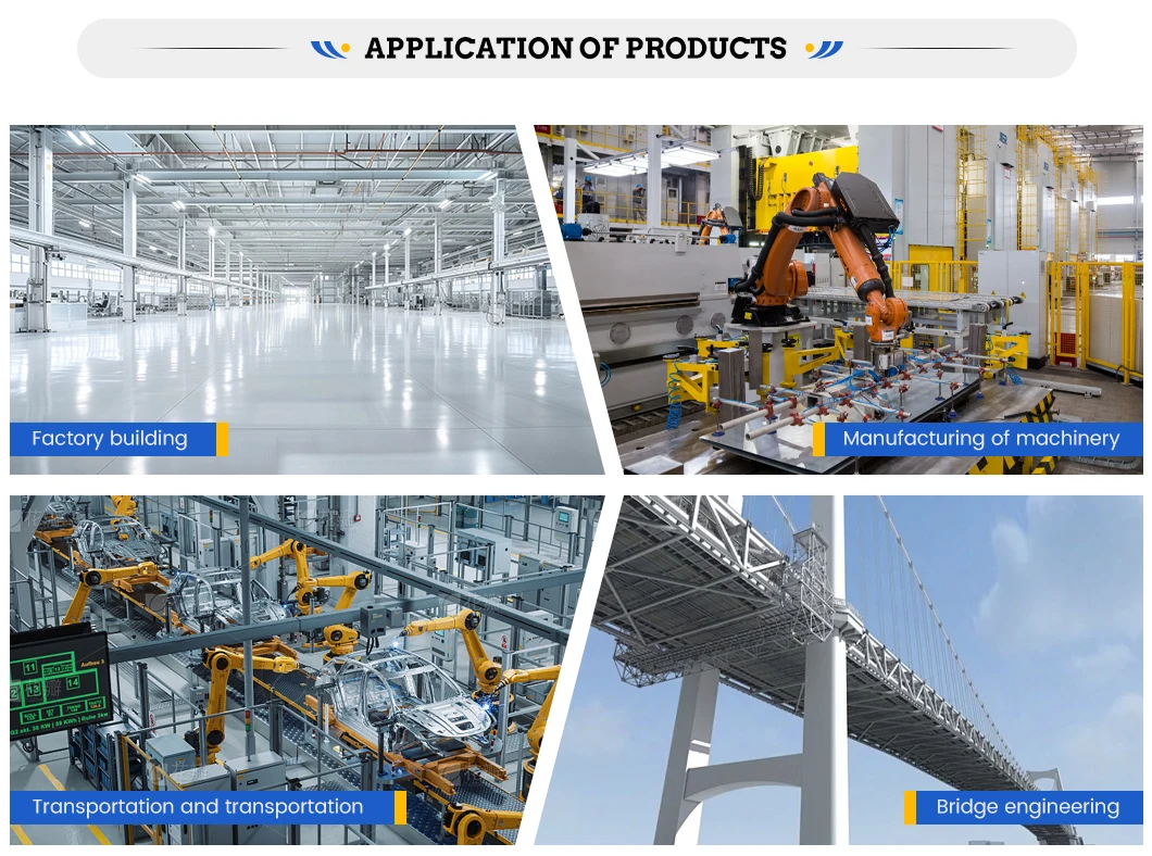 Building structure: Channel steel is widely used in beams, columns, frames and other load-bearing members in buildings to provide structural stability and support.Mechanical equipment manufacturing: Channel steel is used to manufacture the frame and load-bearing structure of mechanical equipment to improve the stability and safety of equipment.Transportation: