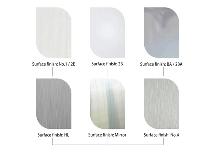 2B,BA(bright annealed) NO.1 NO.2 NO.3 NO.4,8K HL(Hair Line) PVC