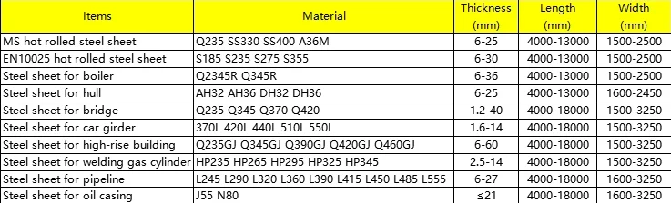Q195 Q215 Q235 Q345 SS490 SM400 SM490 SPHC SPHD SPHE SPHF SEA1002 SEA1006 SEA1008 SEA1010 65Mn SPHT1 SPHT2 SPH3 SPH4 SS400, ASTM A36, A572,A53B, A106B, API 5L Q195, Q215, Q235,Q345,S235JR, S355JR, S45C, S50C ST37,ST35,ST37,ST35,ST42,ST45,ST52, STP G38,STP G42,STPT42,STB42,STS42,STPT49,STS49 SPCC DC01 DC02 DC03 DC04 DC05 DC06 Others as your requirement