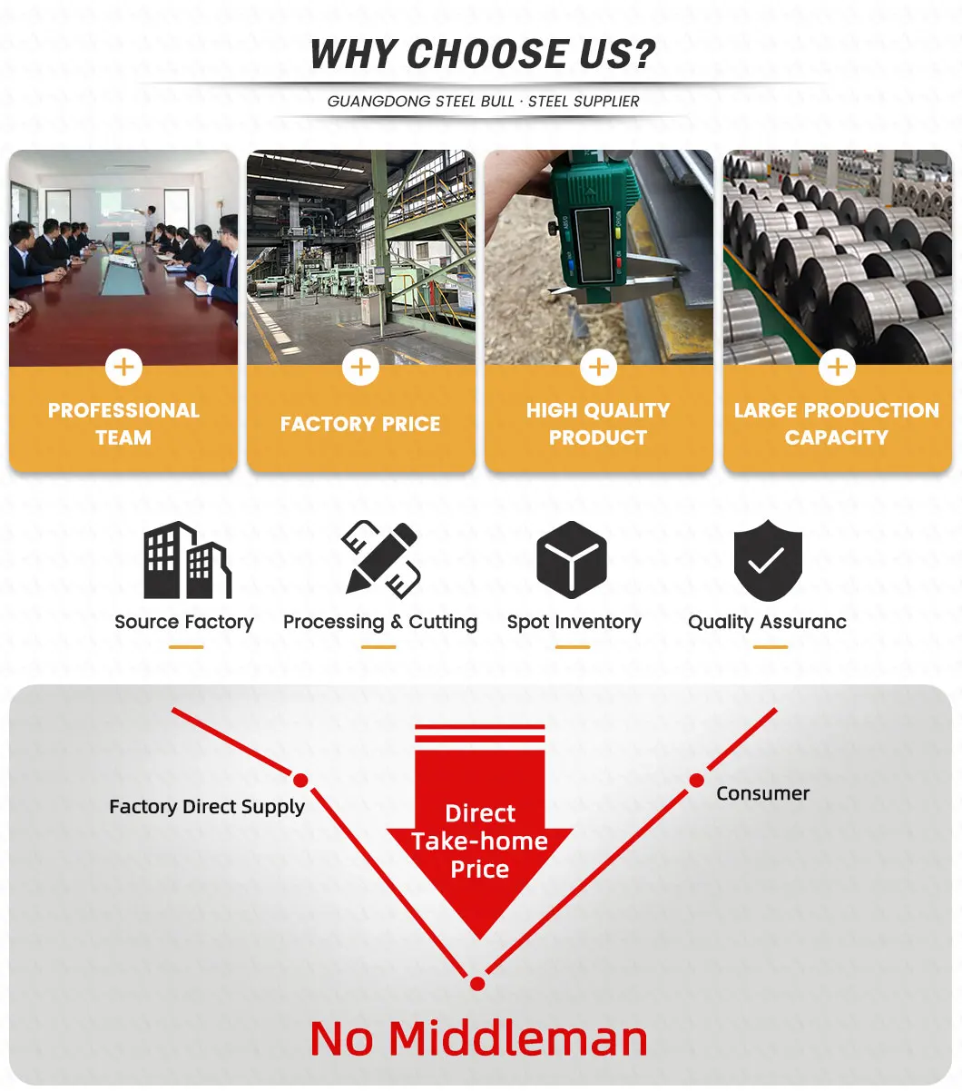 Quality | We can produce special specifications of steel products according to orders. Our production process strictly conforms to the international standard of DIN/ASTM/AISI /JIS/BS to ensure the quality. |