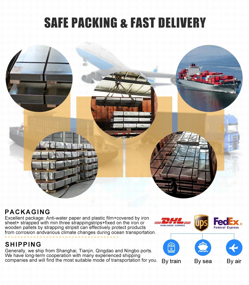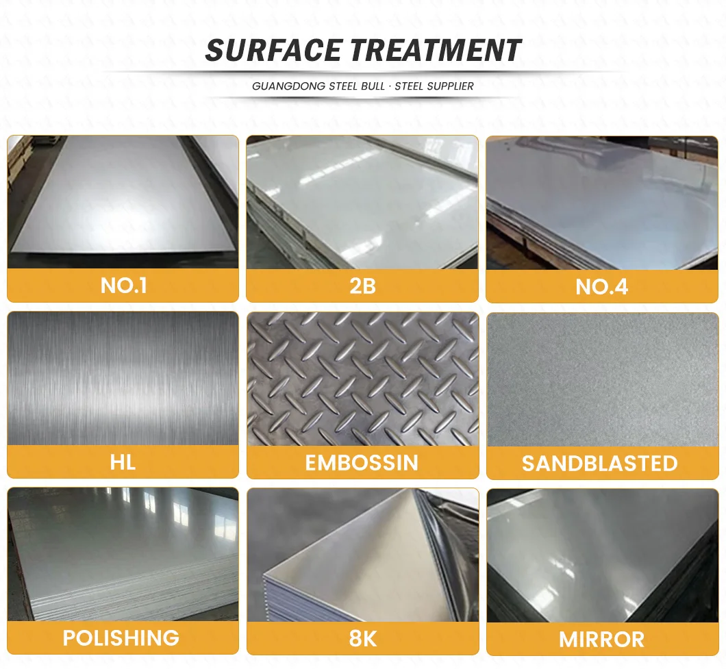 2B, NO.1, BA, NO.4, 8K, HL, Polished, Mill, Embossing, Satin, ect with PVC/PE/Laser film