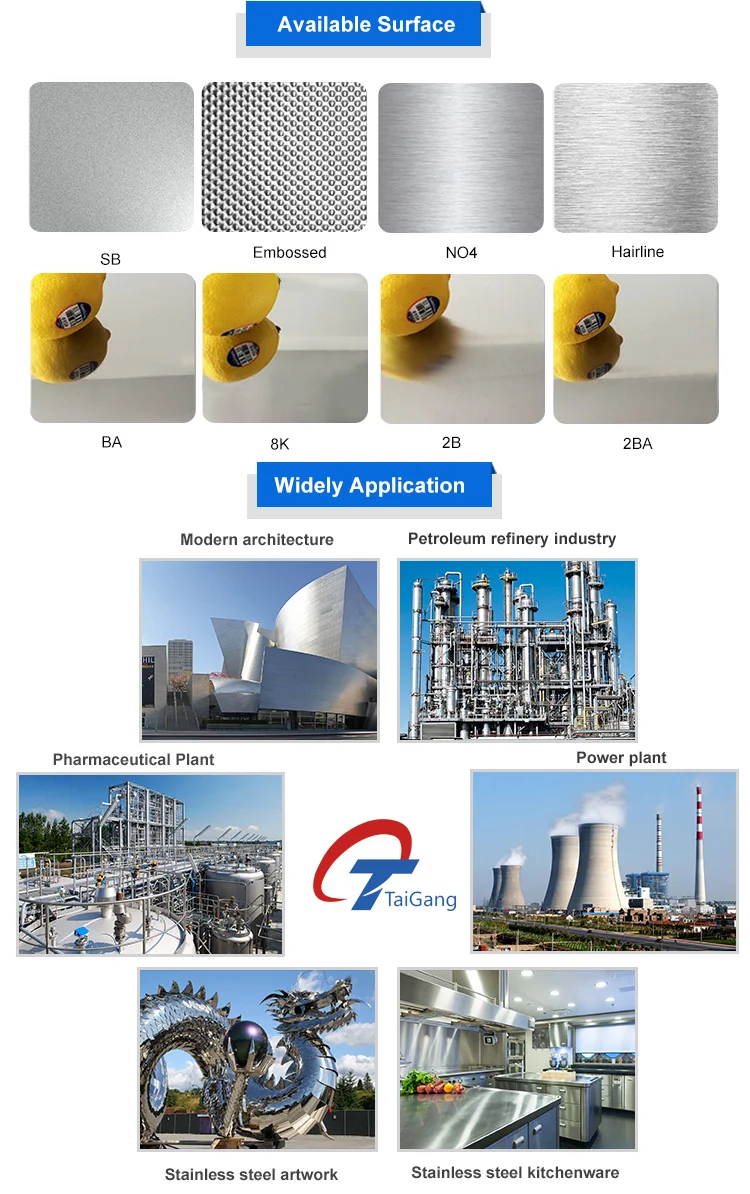 Surface Finish | 304 BA / NO.4 / 2B / 304L 2B . 304 2D (1/2H, 3/4H, H) / 304 (1/2H, 3/4H, H) |